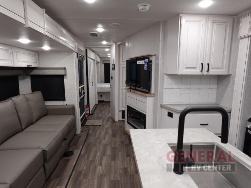 Measuring approximately 32 feet in length, the Open Range 335RBS provides ample space for family and friends. It comfortably sleeps up to six people, making it ideal for family vacations or trips with friends. The interior is thoughtfully designed with cozy sleeping areas, a fully equipped kitchen, and a comfortable living space. Imagine cooking up a delicious meal after a day of exploring, then kicking back in the plush seating area to unwind.