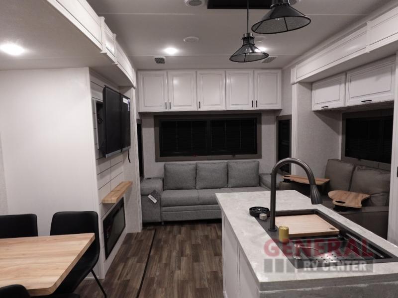 This exceptional fifth wheel features three slide-outs, expanding the living space to provide a generous and inviting environment. Accommodating up to four guests, it offers a well-appointed sleeping arrangement that ensures restful nights on the road. The RV's robust construction is evident in its weight of 5,458 kilograms, providing a stable and secure ride without compromising on mobility. The Open Range 3X 287RLS is engineered for those who appreciate the finer things in life, with every detail meticulously considered to enhance your journey.