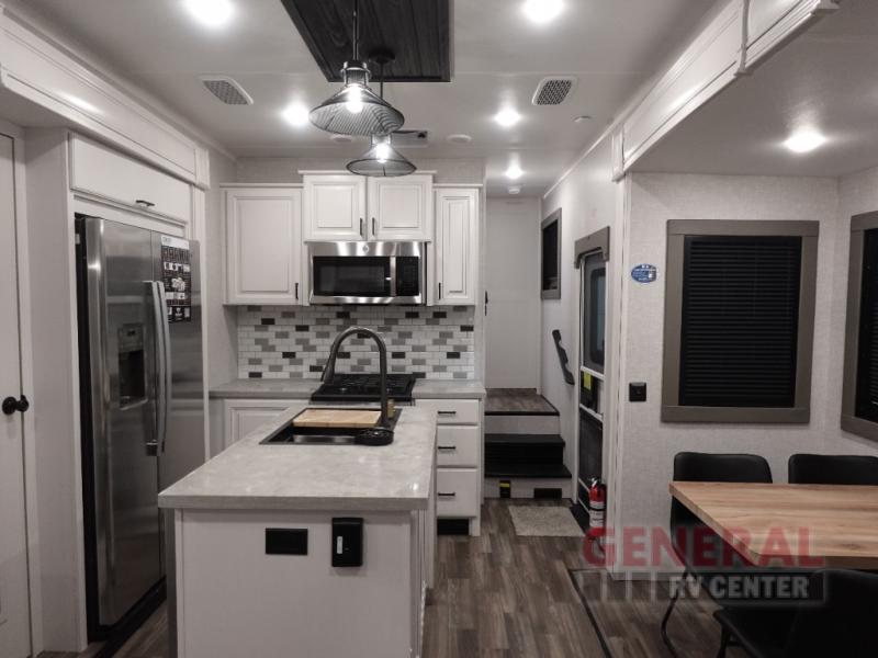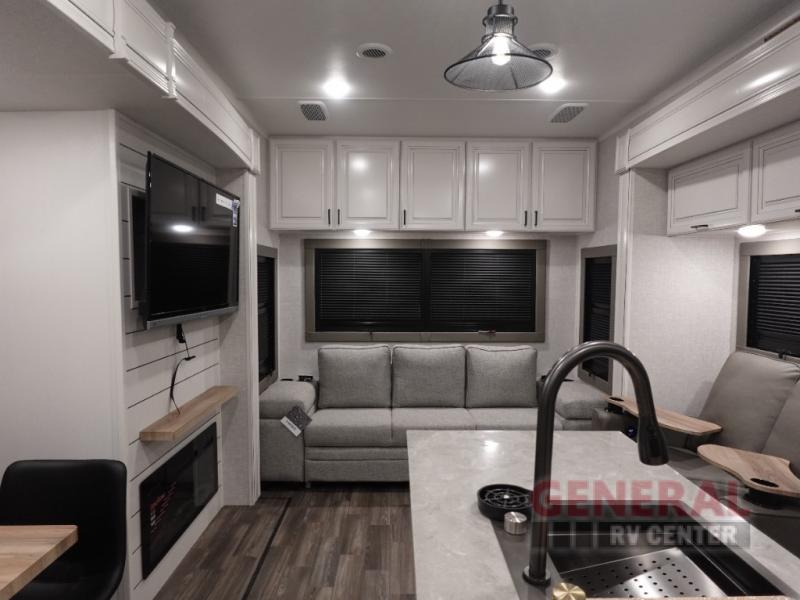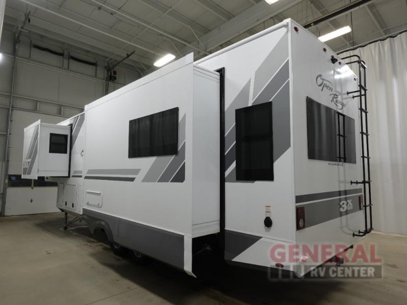 The Open Range 3X 287RLS features three expansive slide-outs, significantly enhancing the interior space to provide a roomy and comfortable living environment. This model is thoughtfully designed to accommodate up to four occupants, making it perfect for couples or small families seeking a home-like experience while exploring the great outdoors. The interior is meticulously crafted with high-quality materials and finishes, offering a sophisticated ambiance that complements its practical layout.