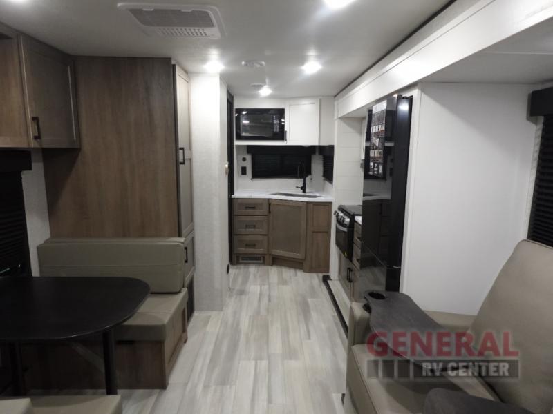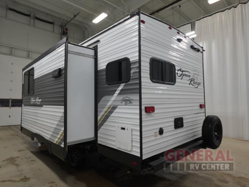Step inside to find a thoughtfully designed interior that maximizes space and functionality. The single slide-out expands your living area, providing ample room for relaxation and entertainment. The Open Range 22MLS comfortably sleeps three, making it perfect for small families or couples seeking a cozy getaway. The well-appointed kitchen features modern appliances and plenty of storage, allowing you to prepare your favorite meals with ease. The inviting living area is perfect for unwinding after a day of adventure, while the comfortable sleeping quarters ensure a restful night's sleep.