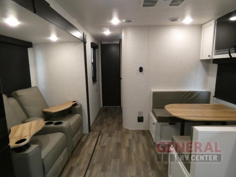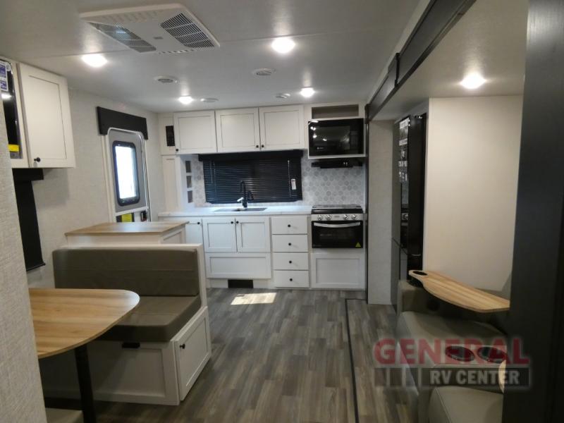 The Range Lite 233ML features one slide-out, expanding your living area to create a roomy and inviting atmosphere. Inside, you'll find accommodations to sleep up to four people, making it ideal for family getaways or trips with friends. The thoughtfully designed interior includes a cozy sleeping area, a fully equipped kitchen, and a comfortable seating area, ensuring that you have everything you need for a relaxing journey.
