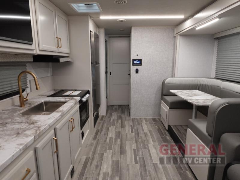 Featuring two slide-outs, this RV provides ample living space, ensuring everyone has room to relax and enjoy the journey. The interior is thoughtfully designed with premium materials and finishes, offering a cozy and inviting atmosphere. The well-equipped kitchen, complete with modern appliances, allows you to prepare delicious meals on the go, while the comfortable sleeping areas ensure a restful night's sleep for all passengers.