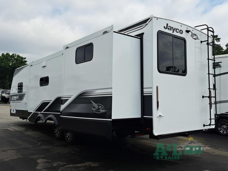 Introducing the 2025 Jayco Eagle HT 312BHOK Travel Trailer, a remarkable blend of comfort, space, and modern amenities, designed to elevate your travel experiences. This meticulously crafted RV boasts three slide-outs, offering expansive living areas that redefine the concept of mobile luxury. With a length of 32 feet, this travel trailer provides ample room for relaxation and entertainment, making it an ideal choice for families or groups seeking adventure without compromising on comfort.