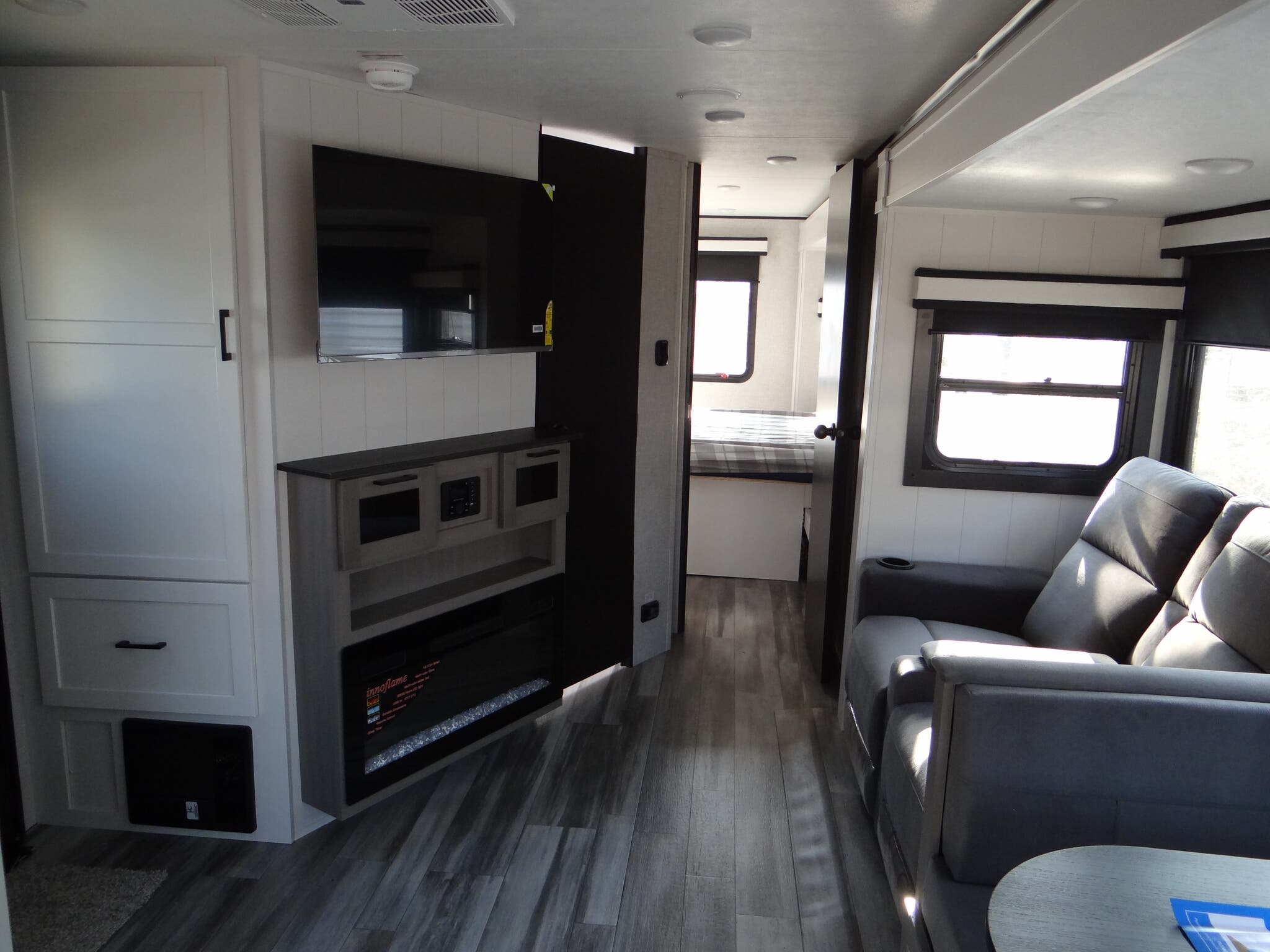 Inside, you'll find a thoughtfully designed layout that comfortably sleeps four, ensuring restful nights after days filled with exploration. The modern kitchen is equipped with top-of-the-line appliances, allowing you to prepare meals with ease, while the cozy living area provides the perfect setting for unwinding with family and friends. The elegant design and high-quality finishes throughout the trailer create a welcoming atmosphere that feels just like home, no matter where your journey takes you.