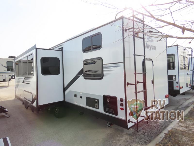 Inside, the Jay Feather 29BHB is thoughtfully designed to accommodate up to 10 sleepers, ensuring everyone has a cozy place to rest after a day of exploration. The intelligently arranged floor plan includes a master bedroom, bunk beds, and convertible sleeping areas, offering flexibility and privacy for all occupants. The modern kitchen is equipped with essential appliances, allowing you to prepare delicious meals on the go, while the spacious bathroom ensures convenience and comfort.
