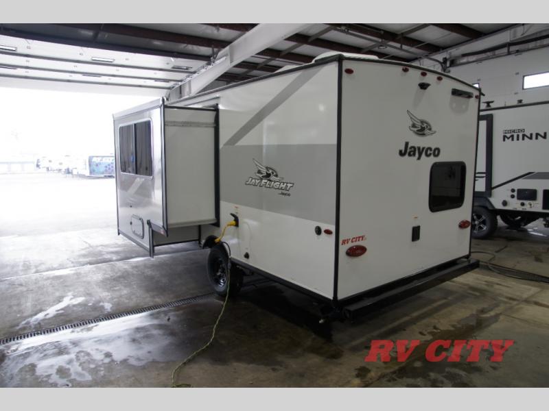 Inside, you'll find a cleverly designed layout that can comfortably sleep up to 8 people, making it perfect for family trips or getaways with friends. The single slide-out expands the living area, providing extra room to relax and unwind. The interior is thoughtfully equipped with modern amenities, ensuring you have everything you need for a comfortable stay. Whether you're cooking up a meal in the well-appointed kitchen or enjoying a movie night in the cozy seating area, the Jay Flight SLX 197MBW has you covered.