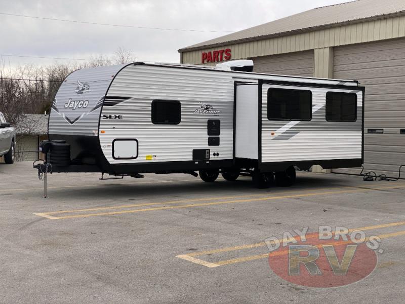 The Jay Flight SLX 262RLS features a single slide-out, enhancing the living area to create a more open and comfortable space for relaxation and entertainment. Designed to accommodate up to four people, this travel trailer is perfect for couples or small families. The interior is thoughtfully designed with high-quality materials and finishes, ensuring a luxurious and cozy atmosphere. The well-appointed kitchen, complete with modern appliances, allows for convenient meal preparation, while the spacious seating area provides a perfect spot for dining or unwinding after a day of exploration.