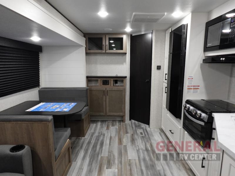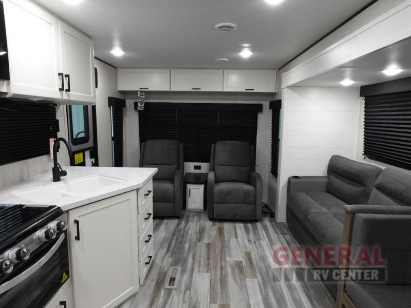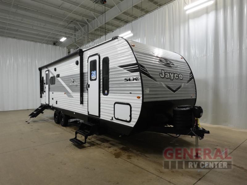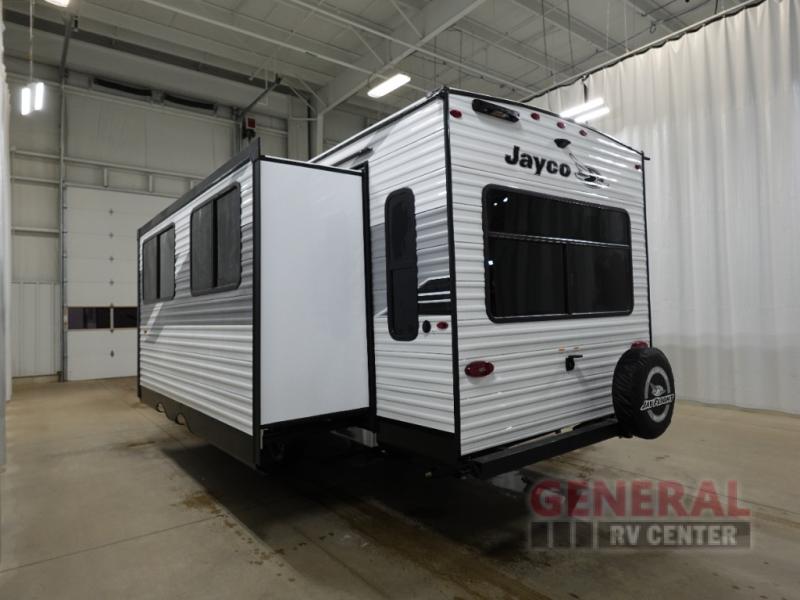 Measuring approximately 26 feet in length, the Jay Flight SLX 262RLS offers a well-thought-out floor plan that comfortably accommodates up to four people. Whether you're embarking on a weekend getaway or an extended road trip, this travel trailer provides all the amenities you need for a memorable journey. The interior is thoughtfully designed with modern finishes and features a fully equipped kitchen, a cozy living area, and a comfortable sleeping space, ensuring you have all the comforts of home on the road.