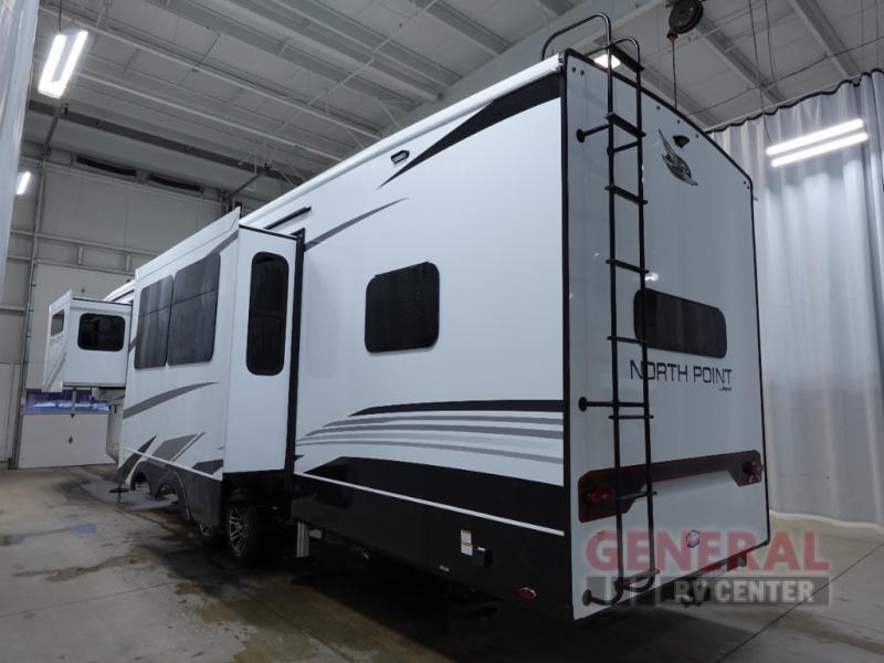 Step inside and you'll find a cozy haven that sleeps up to four people comfortably. The three slide-outs create a roomy interior, giving you and your travel buddies plenty of space to unwind after a day of exploring. The well-appointed kitchen is perfect for whipping up your favorite meals, and the inviting living area is ideal for kicking back with a good book or enjoying a movie night. The North Point's thoughtful design ensures that every inch of space is utilized efficiently, providing you with all the comforts of home while on the road.