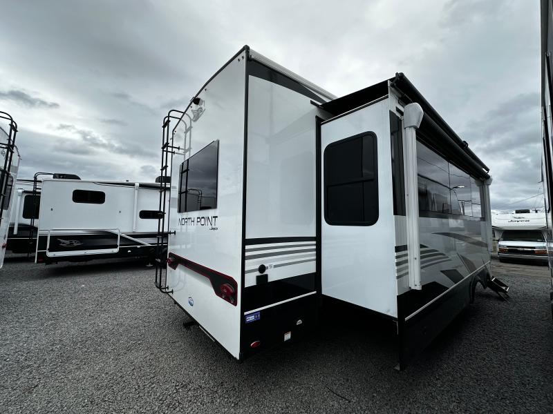 Discover the ultimate in luxury and comfort with the 2025 Jayco North Point 381CKRE Fifth Wheel, a masterpiece of design and functionality. Measuring an impressive 36 feet in length, this RV is your perfect companion for unforgettable adventures. With its sleek exterior and modern aesthetics, the North Point 381CKRE is sure to turn heads wherever you go. Whether you're planning a cross-country road trip or a weekend getaway, this fifth wheel offers the perfect blend of style and practicality.
