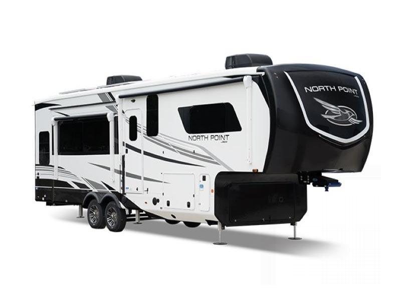 This RV boasts an impressive five slide-outs, providing ample space for everyone to stretch out and relax. Whether you're planning a weekend getaway or a cross-country road trip, the North Point has you covered. It comfortably sleeps six, so there's plenty of room for family and friends. The interior is thoughtfully designed with modern amenities and stylish finishes, ensuring you travel in both comfort and style. Imagine cozy evenings in the spacious living area or cooking up a storm in the fully-equipped kitchen.