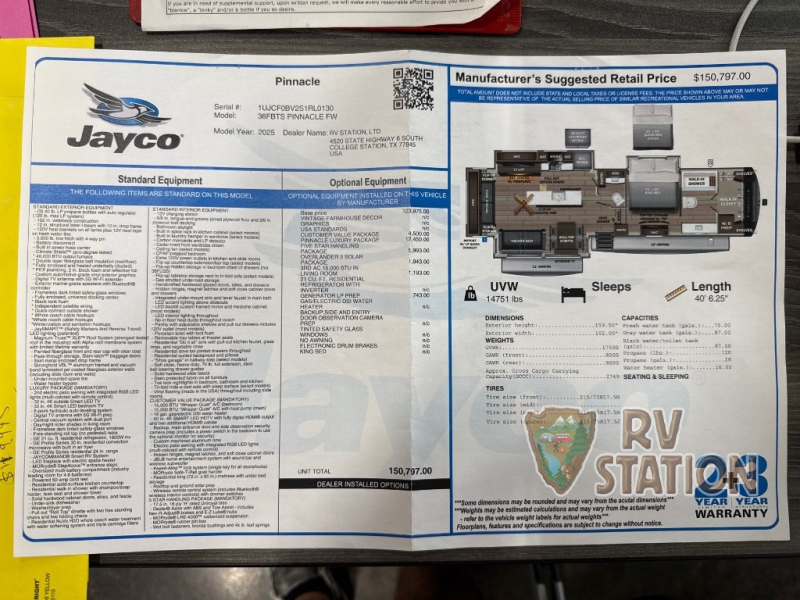 Beyond its luxurious interior, the Jayco Pinnacle 36FBTS is engineered for superior performance and durability. With a robust construction and advanced suspension system, this RV ensures a smooth and stable ride, even on the most rugged terrains. The exterior is equally impressive, featuring ample storage space, an outdoor entertainment center, and a retractable awning for those perfect al fresco evenings. Don’t miss the opportunity to own this pinnacle of RV excellence, where every journey becomes a memorable adventure. Experience the freedom of the open road with the comfort and luxury you deserve.