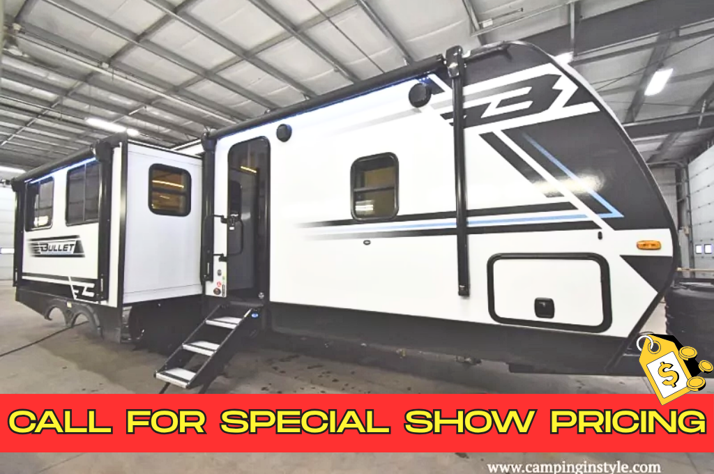 Measuring an impressive 28 feet in length, this travel trailer provides ample space for relaxation and entertainment. The intelligently designed layout includes a cozy living area, a fully equipped kitchen, and a comfortable sleeping arrangement that guarantees restful nights. The Bullet Crossfire's lightweight design, weighing just 3,228 kilograms, makes it easy to tow, ensuring a smooth and hassle-free travel experience. Its aerodynamic profile enhances fuel efficiency, allowing you to go further on your adventures without breaking the bank.