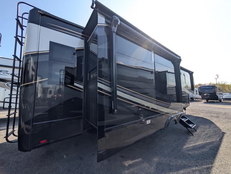 Step inside to discover a beautifully appointed interior that exudes elegance and style. The spacious living area features high-end furnishings and state-of-the-art amenities, ensuring a relaxing and enjoyable stay. The kitchen is equipped with top-of-the-line appliances, including a full-sized refrigerator, convection microwave, and a three-burner cooktop, all designed to cater to your culinary needs. The dining area offers a comfortable setting for meals, while the entertainment center, complete with a large flat-screen TV and premium sound system, provides endless entertainment options.