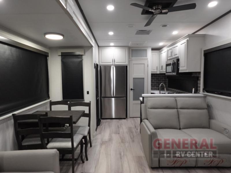 Introducing the 2025 Keystone RV Alpine 3910RK Fifth Wheel, a luxurious and spacious home on wheels designed for the ultimate travel experience. With a length of 35 feet, this RV offers ample space for family and friends, making it the perfect choice for those who love to explore without sacrificing comfort. The Alpine 3910RK features three slide-outs, significantly expanding the living area to provide a roomy and inviting atmosphere.