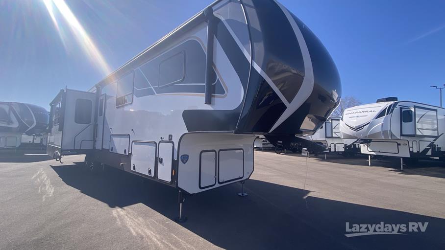 The Avalanche 379MB features four expansive slide-outs, ingeniously crafted to maximize living space and enhance your comfort. Inside, you'll find a meticulously designed interior that boasts premium materials and finishes, creating an inviting and sophisticated ambiance. The spacious living area is perfect for relaxation and entertainment, while the fully-equipped kitchen offers modern appliances and abundant storage, making meal preparation a breeze. The master bedroom, complemented by additional sleeping quarters, ensures restful nights for all occupants.