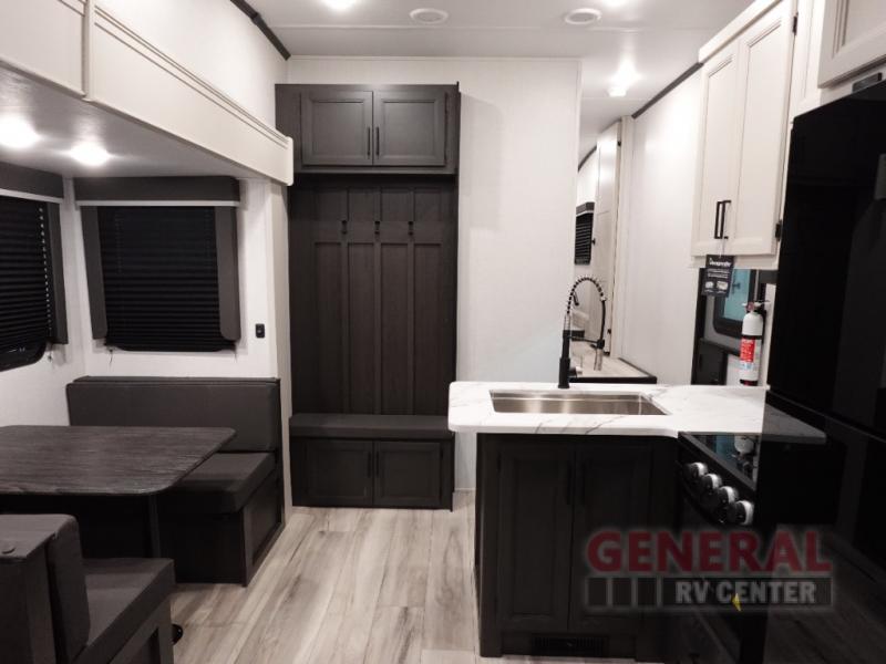 This RV features one slide-out, maximizing your living space when parked. Inside, you'll find cozy sleeping arrangements for up to five people, making it ideal for family trips or a weekend getaway with friends. The interior is thoughtfully designed with modern amenities and stylish finishes, ensuring you travel in both comfort and style. Whether you're cooking up a meal in the fully-equipped kitchen or relaxing in the living area, you'll feel right at home.