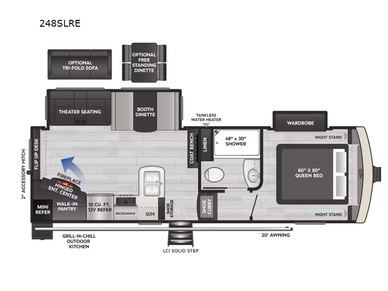 Inside, you'll find a thoughtfully designed interior that combines functionality with style. The living area is equipped with modern furnishings and high-quality finishes, creating a cozy and inviting atmosphere. The kitchen is fully equipped with state-of-the-art appliances, allowing you to prepare meals with ease. The sleeping quarters offer a restful retreat after a day of adventure, ensuring you wake up refreshed and ready for the next day's journey. Experience the freedom of the open road with the 2025 Keystone RV Arcadia Super Lite 248SLRE, where every journey becomes a memorable adventure.