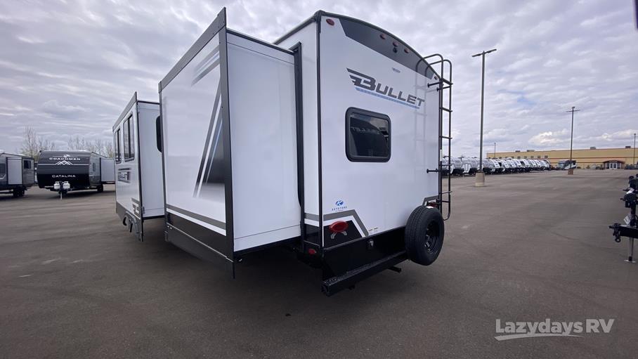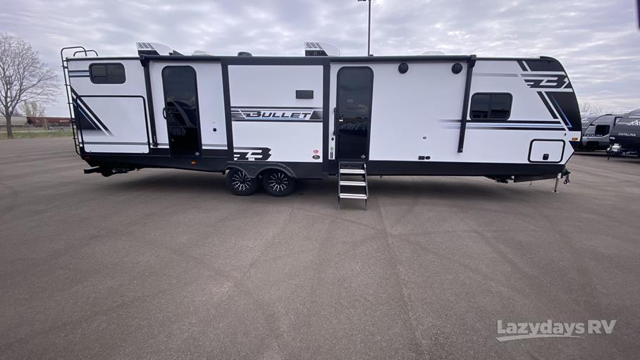 Introducing the 2025 Keystone RV Bullet 330BKQ Travel Trailer, a perfect blend of comfort and functionality for your next adventure. This spacious travel trailer features three slide-outs, offering ample living space for the whole family. With a length of 32 feet, the Bullet 330BKQ is designed to provide a roomy and comfortable environment, whether you're on a weekend getaway or an extended road trip.