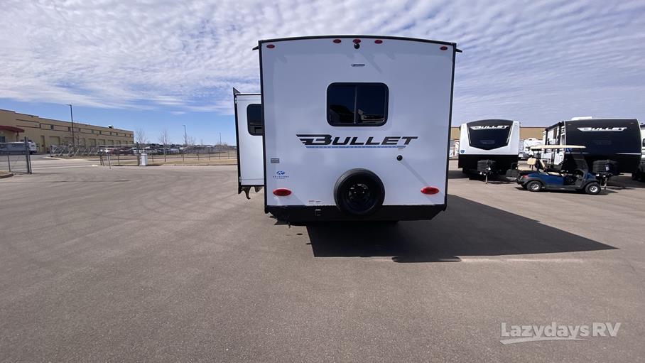 Step inside to find a thoughtfully designed interior that maximizes space and functionality. The Bullet 1840RB features a cozy sleeping area with a plush queen-sized bed, ensuring restful nights after a day of exploration. The well-equipped kitchen includes a refrigerator, microwave, and two-burner stove, allowing you to prepare your favorite meals on the go. The dinette area comfortably seats four and easily converts into an additional sleeping space, perfect for accommodating guests or family members. The bathroom is complete with a shower, toilet, and sink, providing all the essentials for freshening up after a day of adventure.