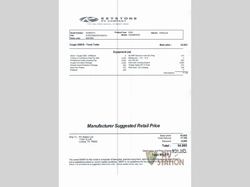 Weighing in at 3,287 kilograms, this travel trailer is built for easy towing without compromising on durability or stability. Its robust construction and thoughtful design make it a reliable companion for all your adventures. Whether you're exploring the great outdoors or enjoying a weekend getaway, the 2025 Keystone RV Cougar Half-Ton 28BHS Travel Trailer offers the perfect home away from home. Don't miss the opportunity to own this exceptional travel trailer and create unforgettable memories with your loved ones.