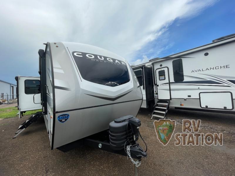 Step inside and be greeted by a spacious interior, thanks to its two slide-outs that maximize living space. The Cougar Half-Ton comfortably sleeps four, making it perfect for family getaways or a cozy retreat for two. The thoughtfully designed layout includes a fully equipped kitchen, a comfortable living area, and a private sleeping space, ensuring you have everything you need for a comfortable stay. The high-quality finishes and modern appliances add a touch of elegance, making every moment spent inside a pleasure.