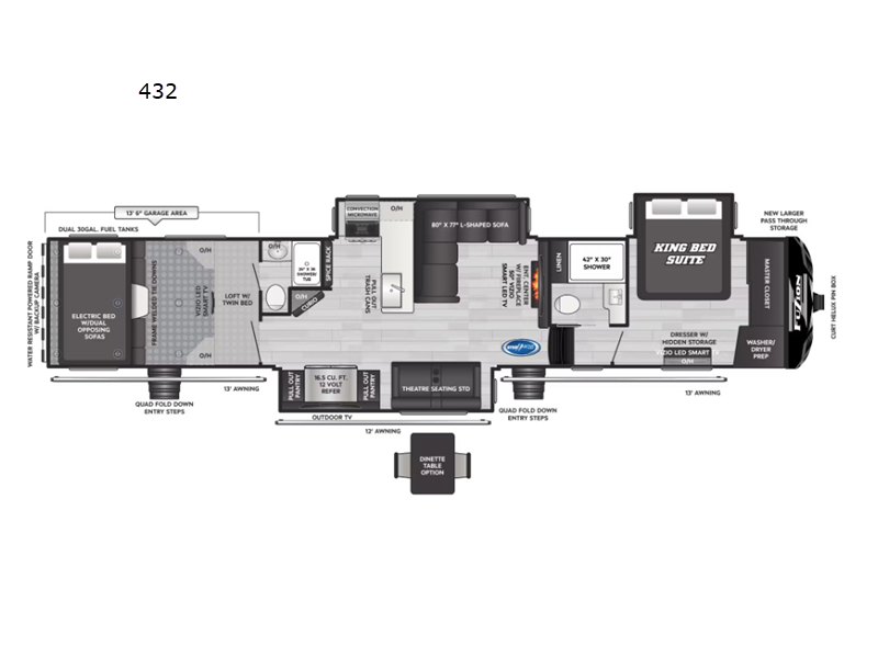 At 432 feet long, this Keystone Fuzion is the perfect blend of space and maneuverability. It’s packed with all the modern amenities you’d expect, making it a true home away from home. Whether you're a weekend warrior or planning a cross-country trek, this RV is your ticket to freedom and adventure. Don’t miss out on the chance to own this incredible vehicle—your next great journey awaits!