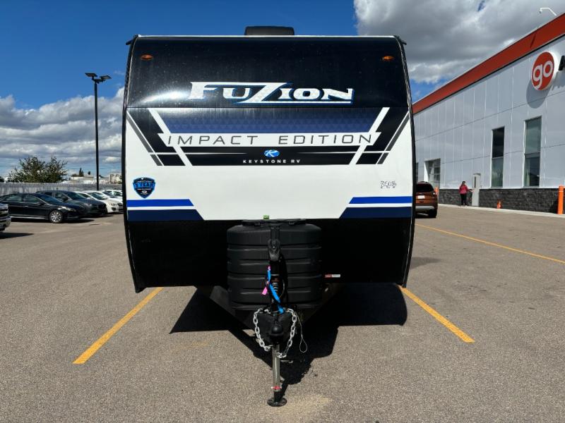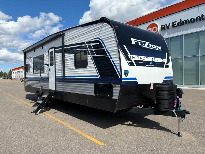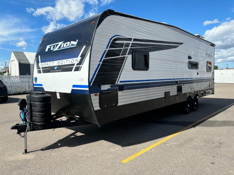 Measuring 28 feet in length, the Fuzion Impact Edition 2915 boasts a smart layout with one slide-out, maximizing your living space without compromising on mobility. Inside, you'll find ample room to sleep up to six people comfortably, making it ideal for family trips or a getaway with friends. The well-designed interior features modern amenities and a cozy atmosphere, ensuring you feel right at home no matter where you are.