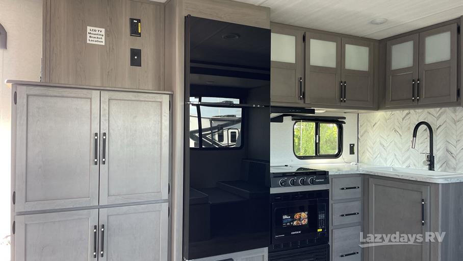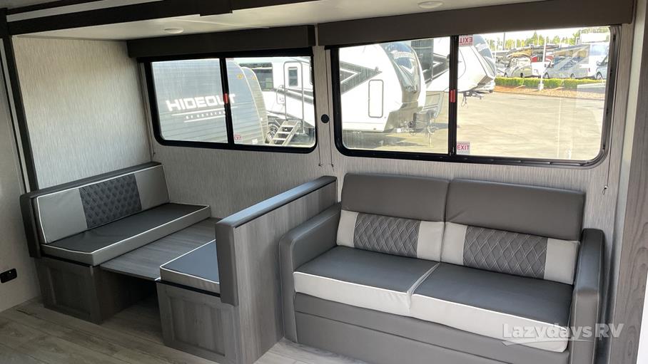 The Hideout 291BRWE features one slide-out, expanding your living area to create a spacious and inviting environment. Inside, you'll find a thoughtfully designed layout that maximizes functionality and comfort. The interior boasts high-quality finishes and modern amenities, including a fully equipped kitchen, a cozy dining area, and a comfortable sleeping space. The trailer's efficient design ensures that you have everything you need for a comfortable stay, whether you're parked at a campsite or exploring off the beaten path.