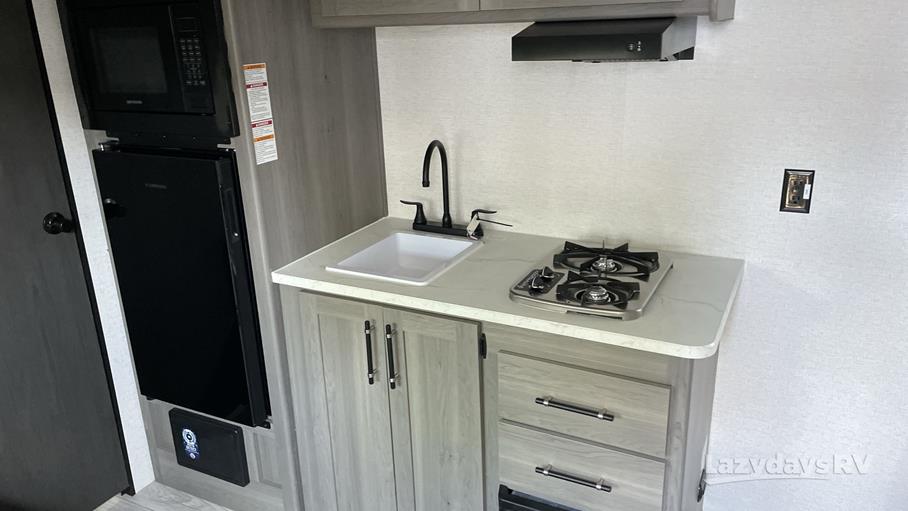 Weighing in at approximately 1,373 kilograms, this lightweight trailer is easy to tow, making it an ideal choice for both seasoned travelers and RV newcomers. Despite its compact size, the Hideout Sport 178RB comfortably sleeps up to three people, making it perfect for small families or couples seeking a weekend getaway. The intelligently designed floor plan includes a comfortable sleeping area, a fully equipped kitchenette, and a compact bathroom, ensuring all your needs are met on the road.