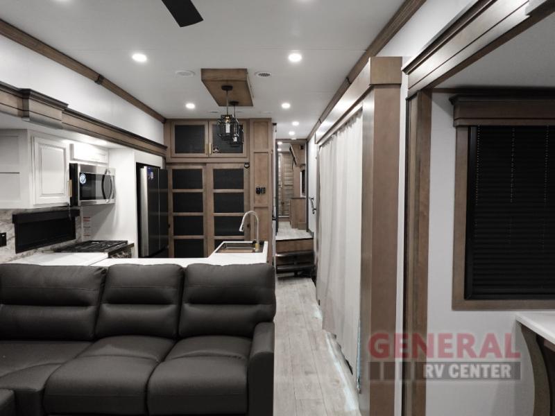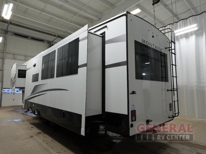 The Montana 3532SP features three expansive slide-outs, significantly enhancing the interior space and providing a roomy atmosphere for relaxation and entertainment. This model is thoughtfully designed to accommodate up to four occupants comfortably, making it ideal for couples or small families. The interior is adorned with high-quality finishes and modern amenities, ensuring a luxurious experience on the road. The well-appointed kitchen, complete with top-of-the-line appliances, allows for gourmet meal preparation, while the cozy living area provides a perfect setting for unwinding after a day of exploration.