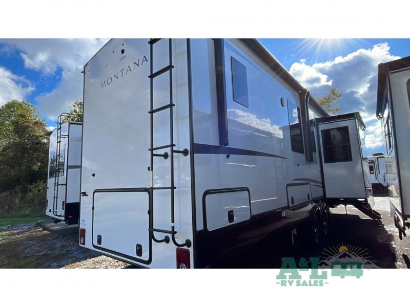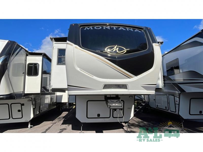 The Montana 3761FL features five expansive slide-outs, ingeniously maximizing interior space to create a home-like atmosphere on the road. It comfortably accommodates up to six people, ensuring that everyone has their own space to unwind after a day of exploration. The thoughtfully designed floor plan includes a spacious front living area, a fully equipped kitchen, and a cozy sleeping area, all adorned with high-quality finishes and modern amenities. Whether you're embarking on a weekend getaway or an extended journey, this RV promises a seamless blend of style and practicality.