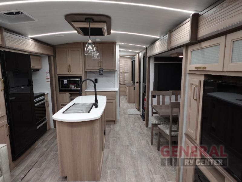 The Outback 330RL is thoughtfully crafted to accommodate up to four occupants, providing ample space for relaxation and entertainment. Its three slide-outs significantly enhance the interior living area, offering a spacious and open environment that rivals the comforts of a traditional home. The well-appointed living space includes a fully equipped kitchen, a cozy seating area, and a luxurious sleeping arrangement, ensuring that every aspect of your travel experience is catered to with precision and care.