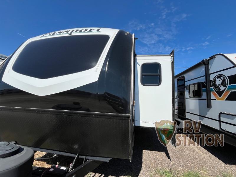 Inside, you'll find cozy accommodations for up to three people. The well-equipped kitchen makes meal prep a breeze, while the comfortable sleeping area ensures a restful night's sleep. With its stylish decor and practical features, the Passport 2710KB is more than just an RV—it's your home away from home. So why wait? Hit the road and start making memories with this fantastic travel trailer!