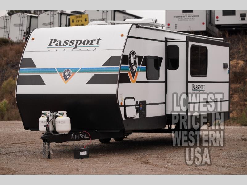 Measuring approximately 22 feet in length, the Passport Classic 224RKWE is compact enough for easy towing yet spacious enough to comfortably accommodate up to four people. The cleverly designed slide-out expands your living space, providing a cozy area for relaxation and entertainment. Whether you're enjoying a meal or unwinding after a day of exploration, the interior offers a welcoming atmosphere with modern amenities and stylish finishes.