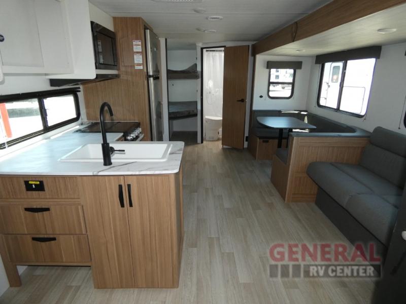 The Passport Classic 264BHWE features one slide-out, significantly enhancing the living space and creating a welcoming environment for relaxation and entertainment. It is thoughtfully designed to sleep up to nine people, making it ideal for family vacations or group adventures. The interior layout includes a master bedroom, bunk beds, and convertible seating areas, ensuring everyone has a comfortable place to rest. The modern kitchen is equipped with state-of-the-art appliances, allowing you to prepare meals with ease, while the well-appointed bathroom provides the comforts of home on the road.