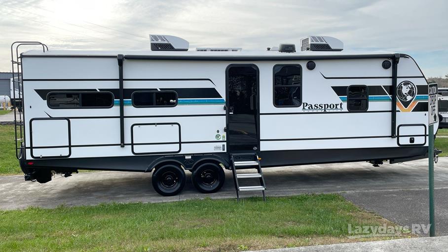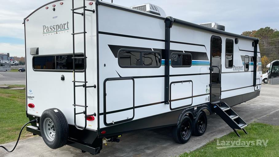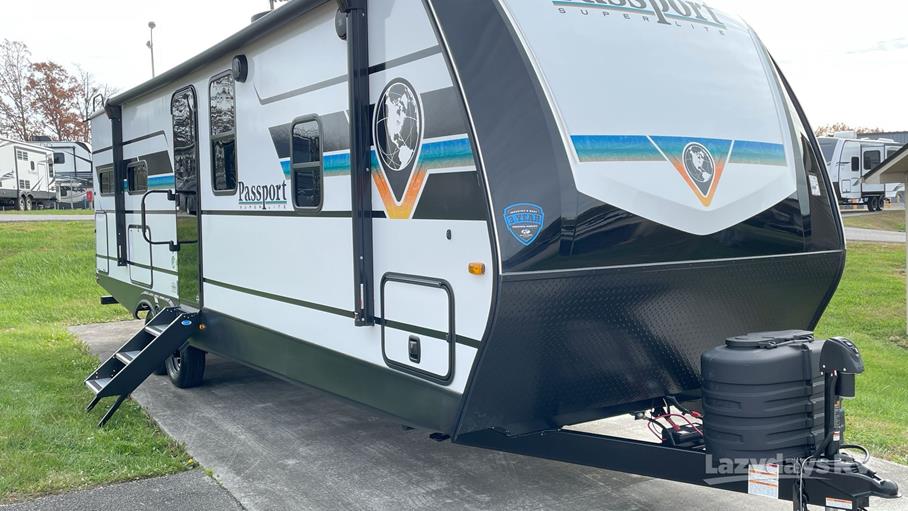 Step inside and be amazed by the intelligently designed interior, featuring a spacious slide-out that expands your living area, providing extra room for dining and lounging. The Passport Super Lite is equipped with modern amenities, including a fully functional kitchen with a refrigerator, microwave, and stove, making meal preparation a breeze. The cozy sleeping quarters comfortably accommodate up to eight people, with a master bedroom, bunk beds, and convertible seating options, ensuring everyone has a restful night's sleep.