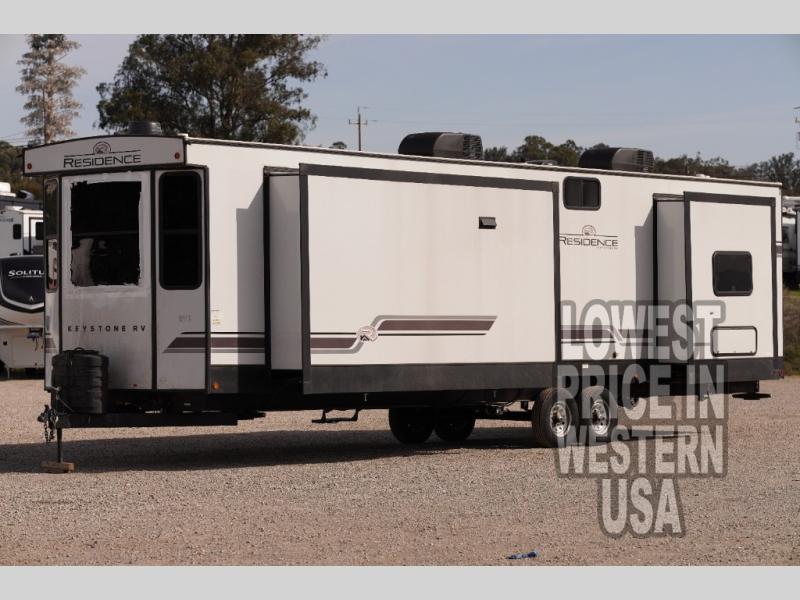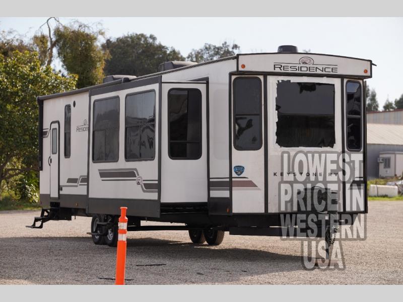 Weighing approximately 5,354 kilograms, the Keystone RV Residence 401MKTS is built for durability and ease of transport. Its robust construction ensures a smooth and stable ride, while the stylish exterior is sure to turn heads wherever you go. Whether you're parked by a serene lakeside or nestled in a cozy forest, this RV offers the perfect escape. Don't miss the opportunity to own this exceptional park model, where luxury meets adventure. Embrace the freedom of the open road and make the 2025 Keystone RV Residence 401MKTS your next home on wheels.