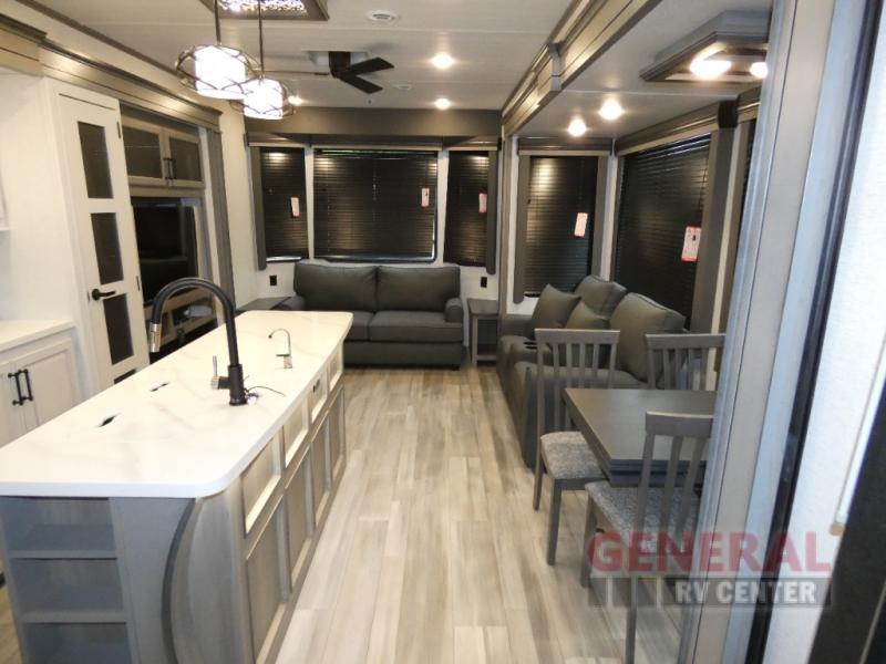 Measuring an impressive 33 feet in length, the Retreat 39 Loft is thoughtfully designed to maximize every inch of space. Inside, you'll find comfortable sleeping arrangements for up to six people, making it ideal for family vacations or group getaways. The loft area adds a unique touch, providing a cozy nook for kids or extra guests. The interior is beautifully appointed with modern amenities, including a fully equipped kitchen, a spacious living area, and a well-designed bathroom, ensuring you have all the comforts of home wherever you roam.