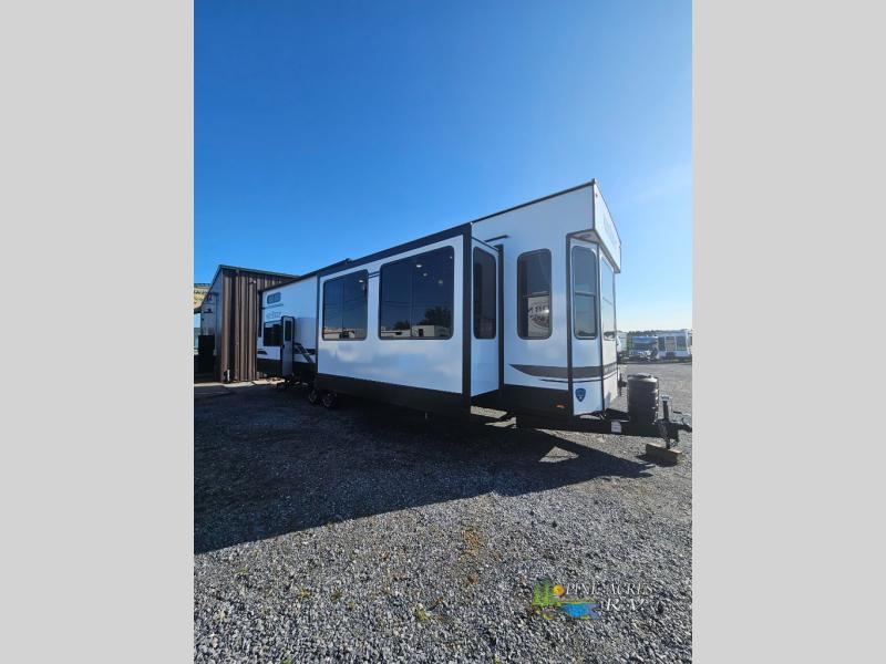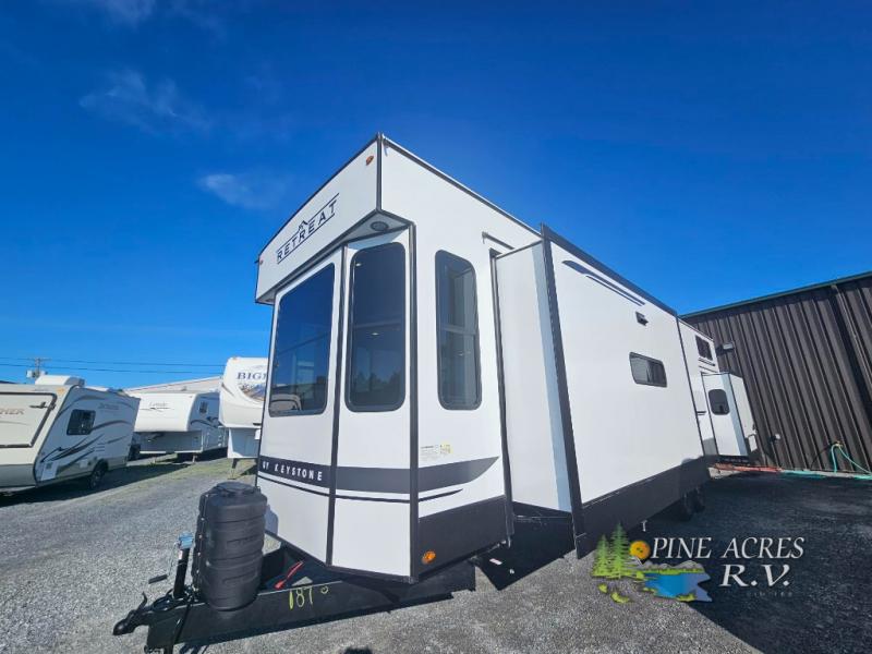 Looking for the perfect getaway on wheels? Check out this 2025 Keystone RV Retreat 391 FSRL Park Model, located in beautiful Hampton, NB! This spacious RV is your ticket to comfort and adventure, offering a homey feel with the freedom to explore. With three slide-outs, it opens up to provide ample living space, making it ideal for family trips or a cozy retreat with friends.