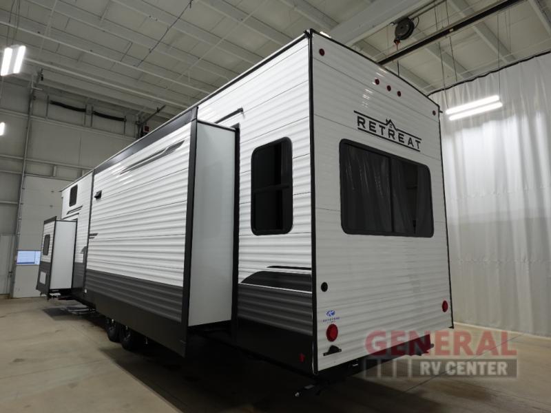 Introducing the 2025 Keystone RV Retreat 39FLFT Park Model, a premier choice for those seeking a luxurious and spacious home away from home. This meticulously designed RV offers an impressive length of 33 feet, providing ample space for comfort and convenience. With three expansive slide-outs, the Retreat 39FLFT maximizes living space, ensuring that you and your family can enjoy every moment of your travels in style and comfort.