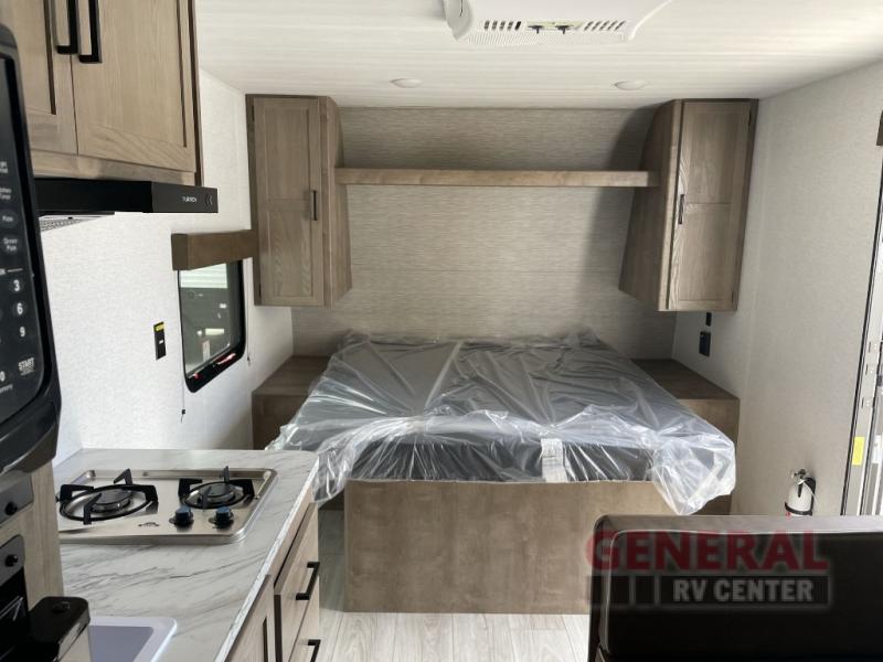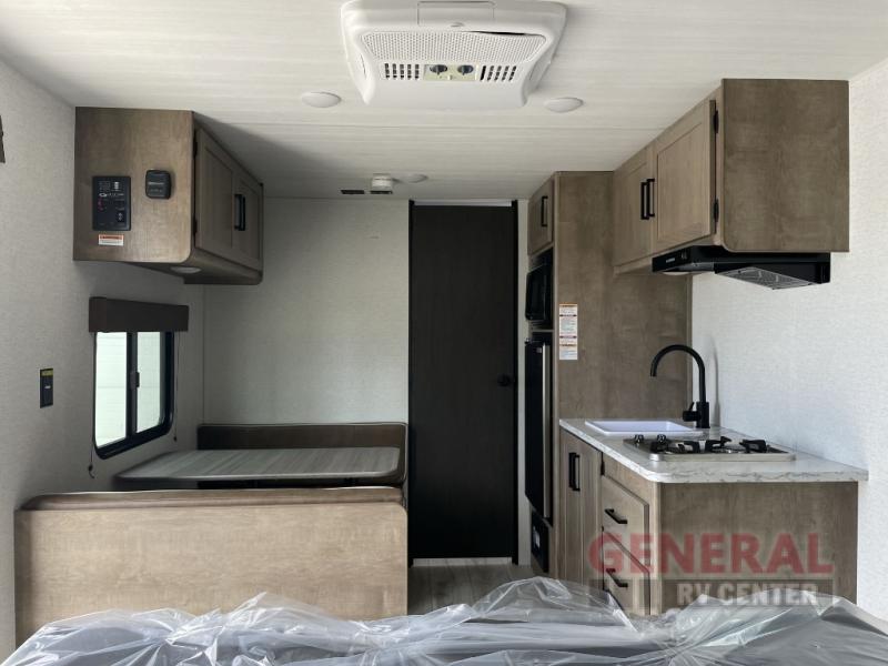 Step inside and you'll find a cozy interior that comfortably sleeps up to three people. Whether you're planning a romantic getaway or a solo adventure with your furry friend, this travel trailer has you covered. The well-designed layout includes a comfortable sleeping area, a fully equipped kitchenette, and a compact yet functional bathroom, ensuring you have everything you need for a memorable trip. The thoughtful use of space means you can enjoy all the essentials without feeling cramped.
