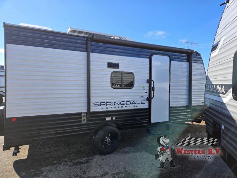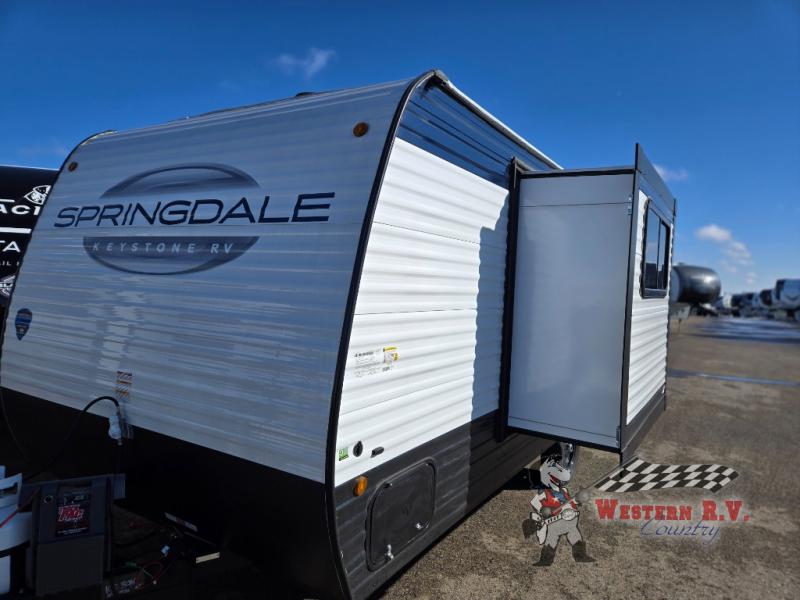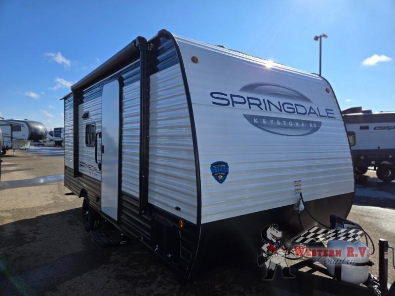 But that's not all! This travel trailer is packed with extras to make your journey even more enjoyable. With a 100-liter fresh water tank, you'll have plenty of water for showers and cooking. The built-in entertainment system, complete with a Bluetooth stereo, will keep you entertained on those rainy days. And let's not forget the electric awning, perfect for creating a shady spot to relax outside. Whether you're planning a weekend getaway or a cross-country road trip, the 2025 Keystone RV Springdale 1760 is ready to hit the road with you. Don't miss out on this fantastic opportunity to own a top-notch travel trailer!