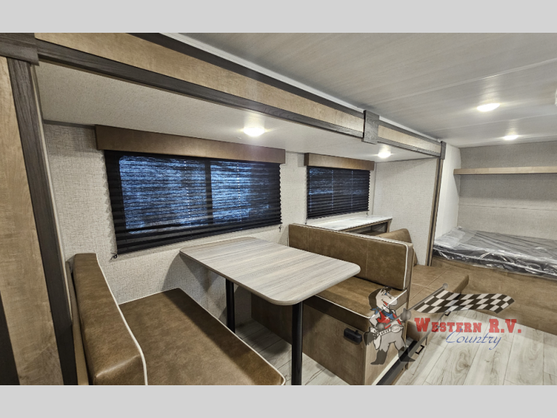 Inside, the Springdale Classic Mini comfortably sleeps up to four people, making it perfect for small families or couples seeking a getaway. The intelligently designed interior includes a cozy sleeping area, a functional kitchenette, and a compact yet comfortable dining space. Every inch of this travel trailer is optimized for functionality, ensuring you have everything you need for a comfortable stay, whether you're parked at a campsite or exploring off the beaten path.