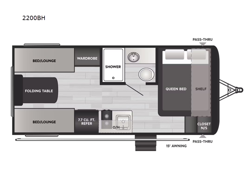 Inside, you'll find a thoughtfully arranged interior that maximizes space and convenience. The Springdale 2200 BH features a cozy sleeping arrangement, including a queen-sized bed and a set of bunk beds, ensuring restful nights for everyone. The well-equipped kitchen comes with a refrigerator, microwave, and a three-burner stove, allowing you to prepare meals with ease. The dinette area provides a comfortable space for dining or relaxing, while the ample storage compartments ensure you can bring along all your essentials.