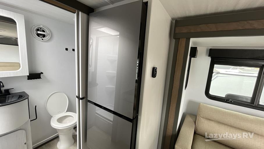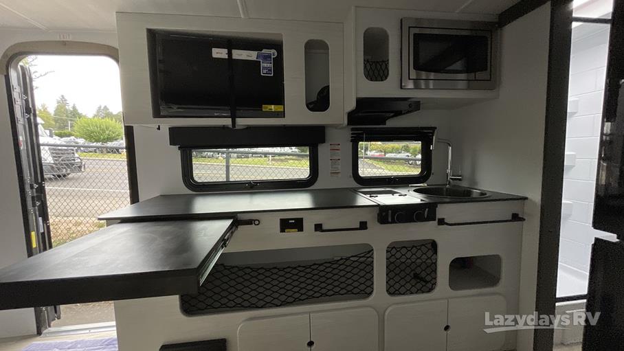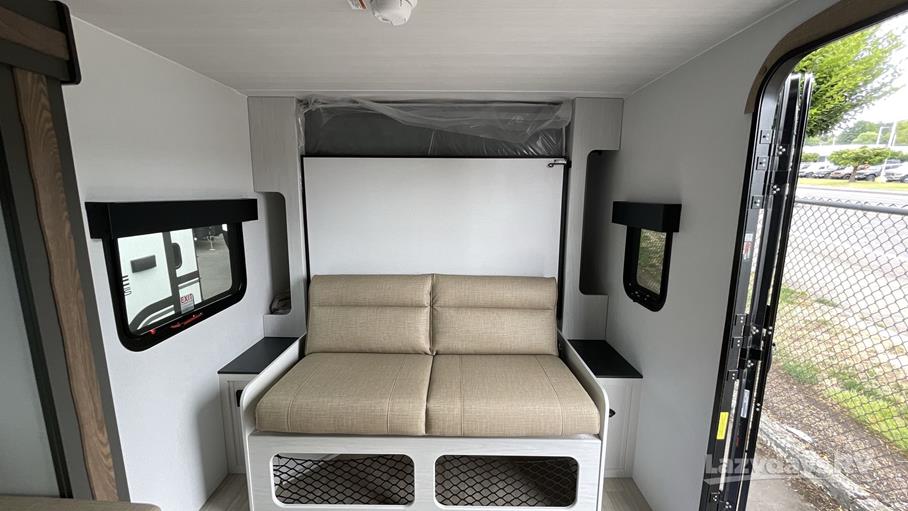 Step inside to find a thoughtfully designed interior that maximizes every inch of space. The single slide-out expands your living area, providing ample room to relax and unwind after a day of exploration. This travel trailer comfortably sleeps three, making it perfect for couples or small families. The cozy sleeping arrangements ensure a restful night, while the well-equipped kitchen and dining area allow you to enjoy home-cooked meals on the road. Every detail, from the stylish finishes to the efficient layout, has been crafted with your comfort in mind.