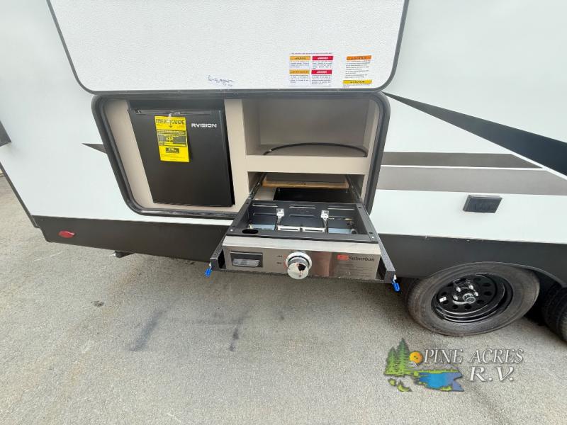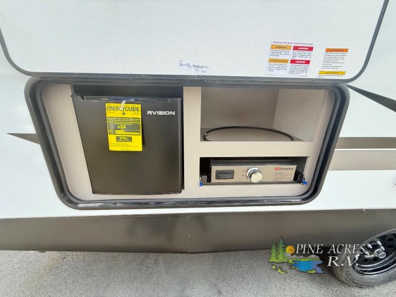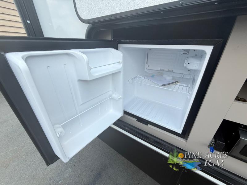 Step inside and you'll find a cleverly designed interior with a single slide-out that maximizes living space. The layout is perfect for families or groups, offering a cozy sleeping arrangement that includes bunk beds, a convertible dinette, and a comfy queen bed. The kitchen is fully equipped with modern appliances, so you can whip up your favorite meals on the go. Plus, there's plenty of storage space to keep all your essentials organized and within reach.