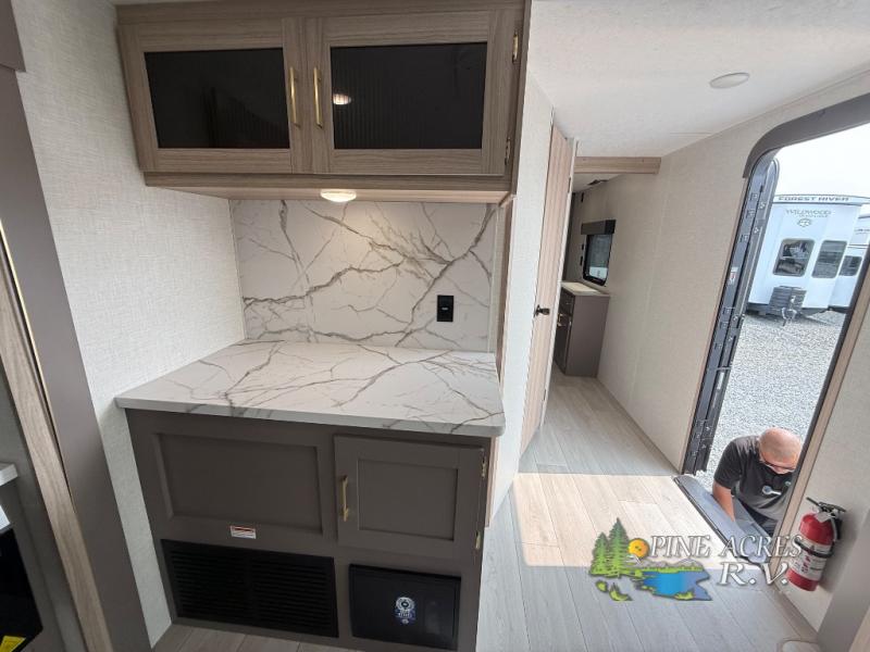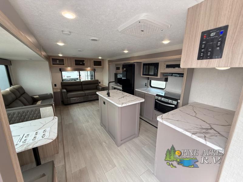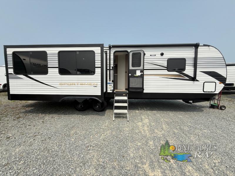 The KZ Sportsmen SE 303QBSE features three slide-outs, significantly enhancing the living space and creating a roomy environment that can comfortably accommodate up to five people. The intelligently designed floor plan includes a master bedroom, a cozy bunkhouse, and a versatile living area, ensuring everyone has their own space to relax and unwind. The interior is thoughtfully appointed with high-quality furnishings and modern appliances, providing all the comforts of home while on the road.