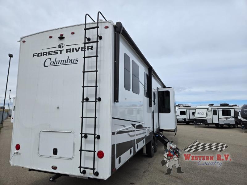 Introducing the 2025 Palomino Columbus 388FKH Fifth Wheel, a luxurious and spacious RV designed for those who crave adventure without sacrificing comfort. This impressive model features five slide-outs, creating an expansive living area that ensures you and your family can relax in style. With the ability to sleep up to six people, this RV is perfect for family trips or getaways with friends.