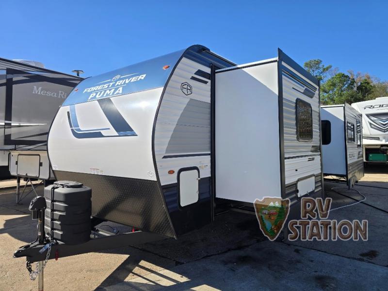 Step inside and be greeted by a thoughtfully designed interior featuring two slide-outs that maximize living space. The Puma 30RKQS comfortably sleeps four, with a cozy queen-sized bed in the master bedroom and a convertible sofa bed in the living area. The rear kitchen layout is a chef's delight, equipped with modern appliances and plenty of counter space for meal preparation. Whether you're whipping up a quick breakfast or a gourmet dinner, you'll have everything you need at your fingertips.